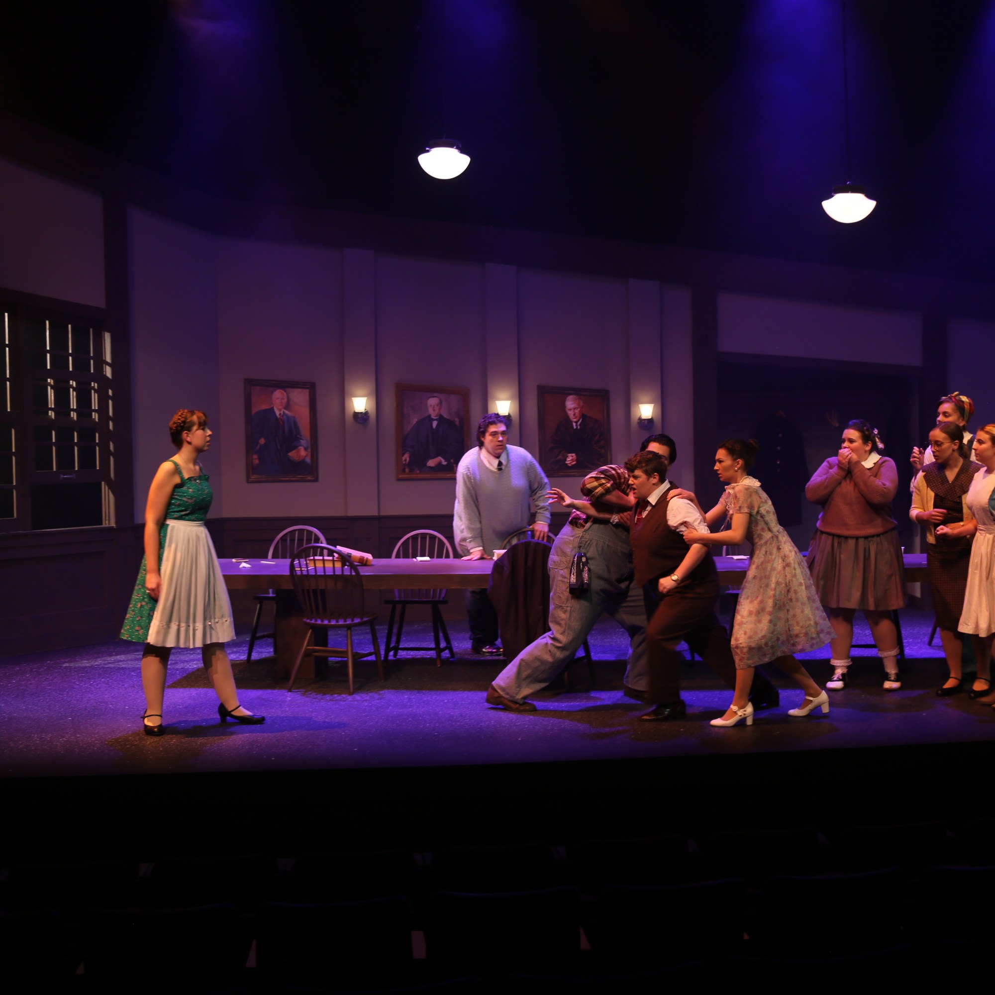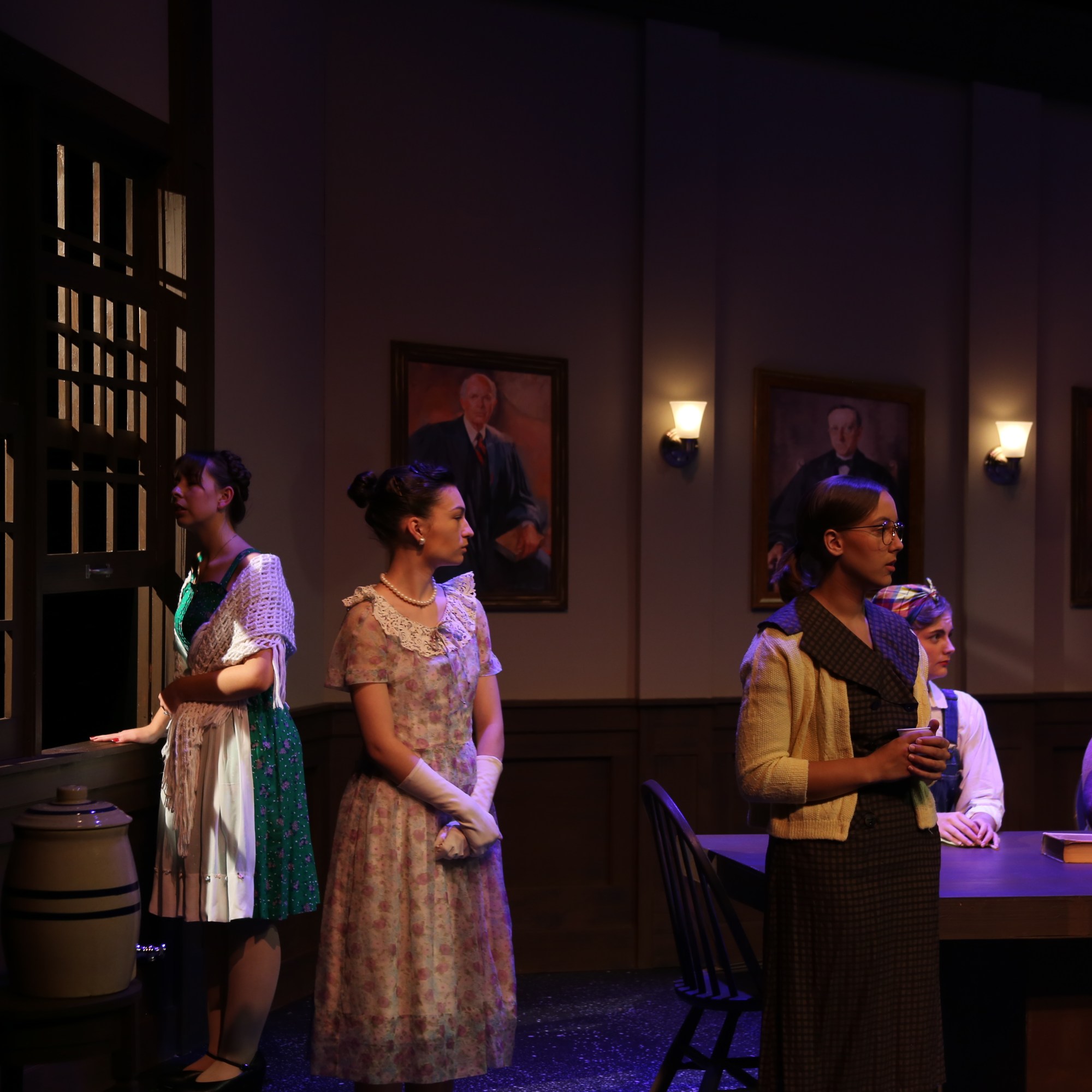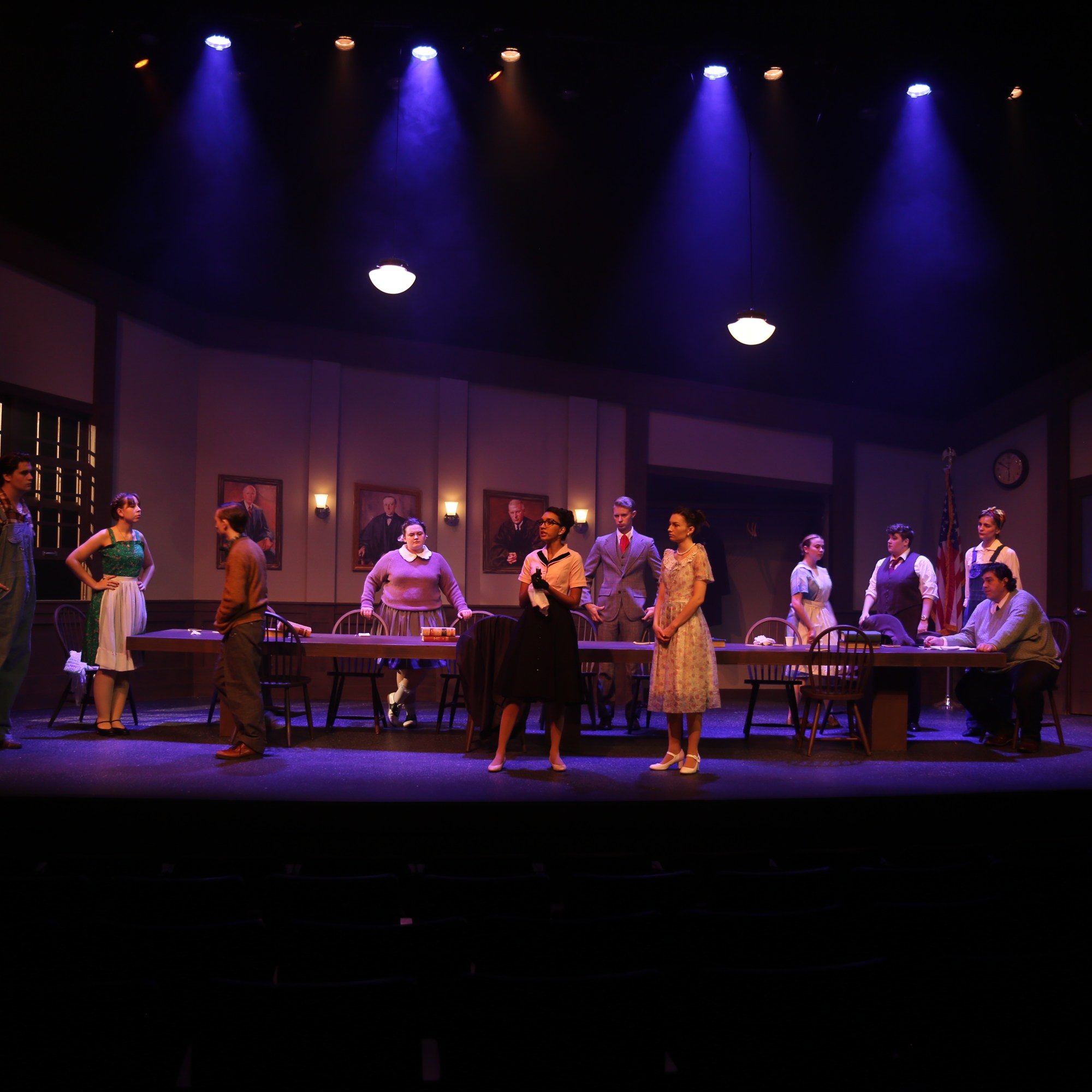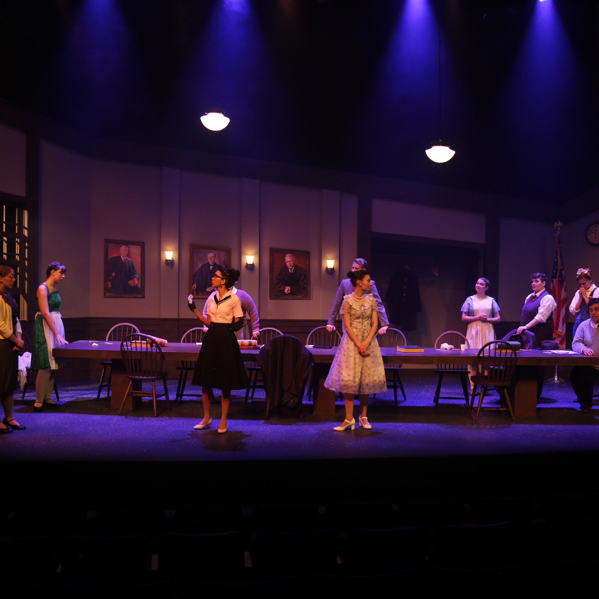 In 12 Angry Jurors, I played Juror #7. Playing a saleswoman was really fun. Juror #7 was interesting to me, because she had more layers as a character than I’m used to playing. I liked to play her with a thin, exterior layer of charm, followed by more internal layers of stubbornness, prejudice, privilege, apathy, and judgement. Juror #7 was a bully, and I had a lot of fun figuring out the foundations of her character and exploring the power dynamics between her and the other jurors.