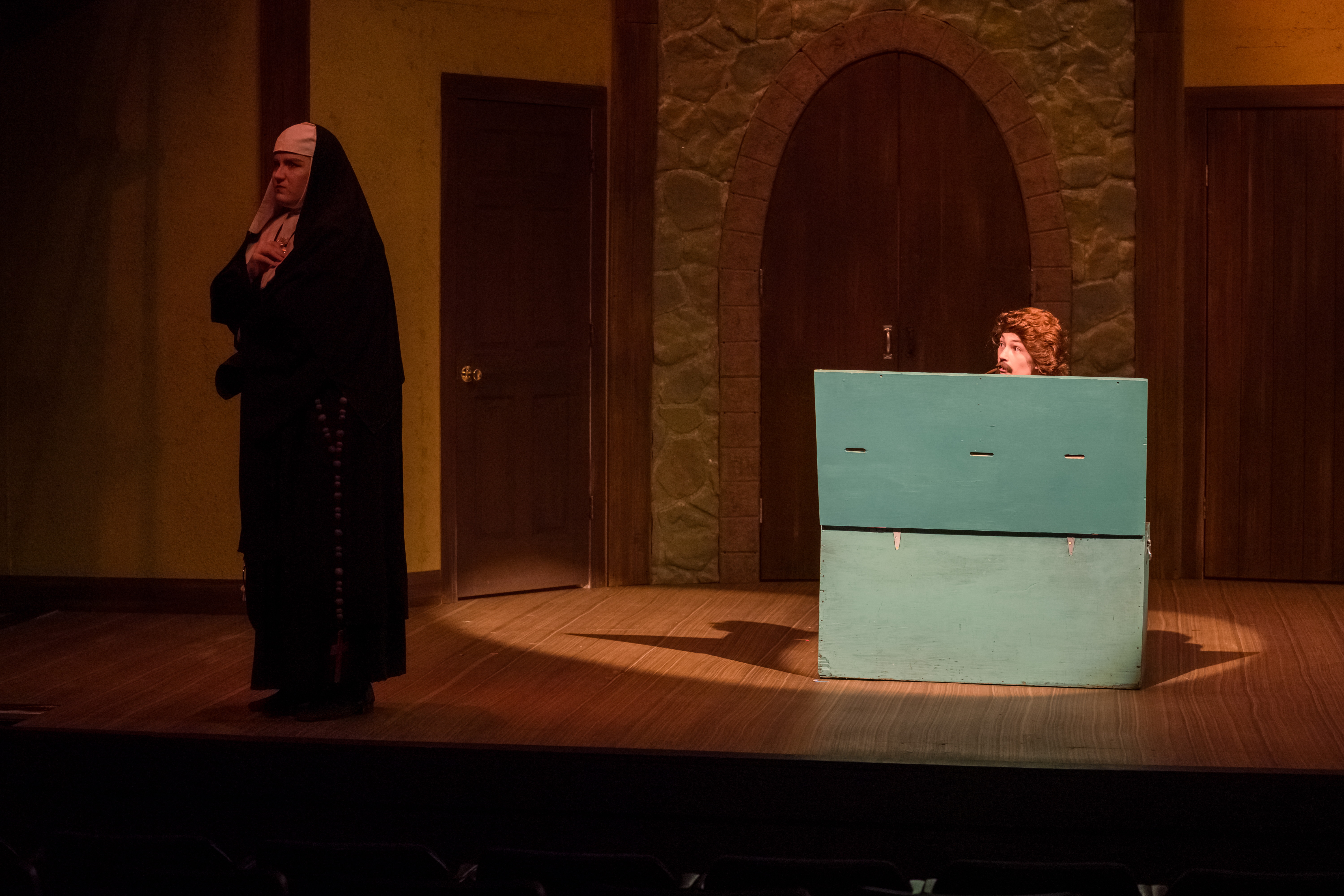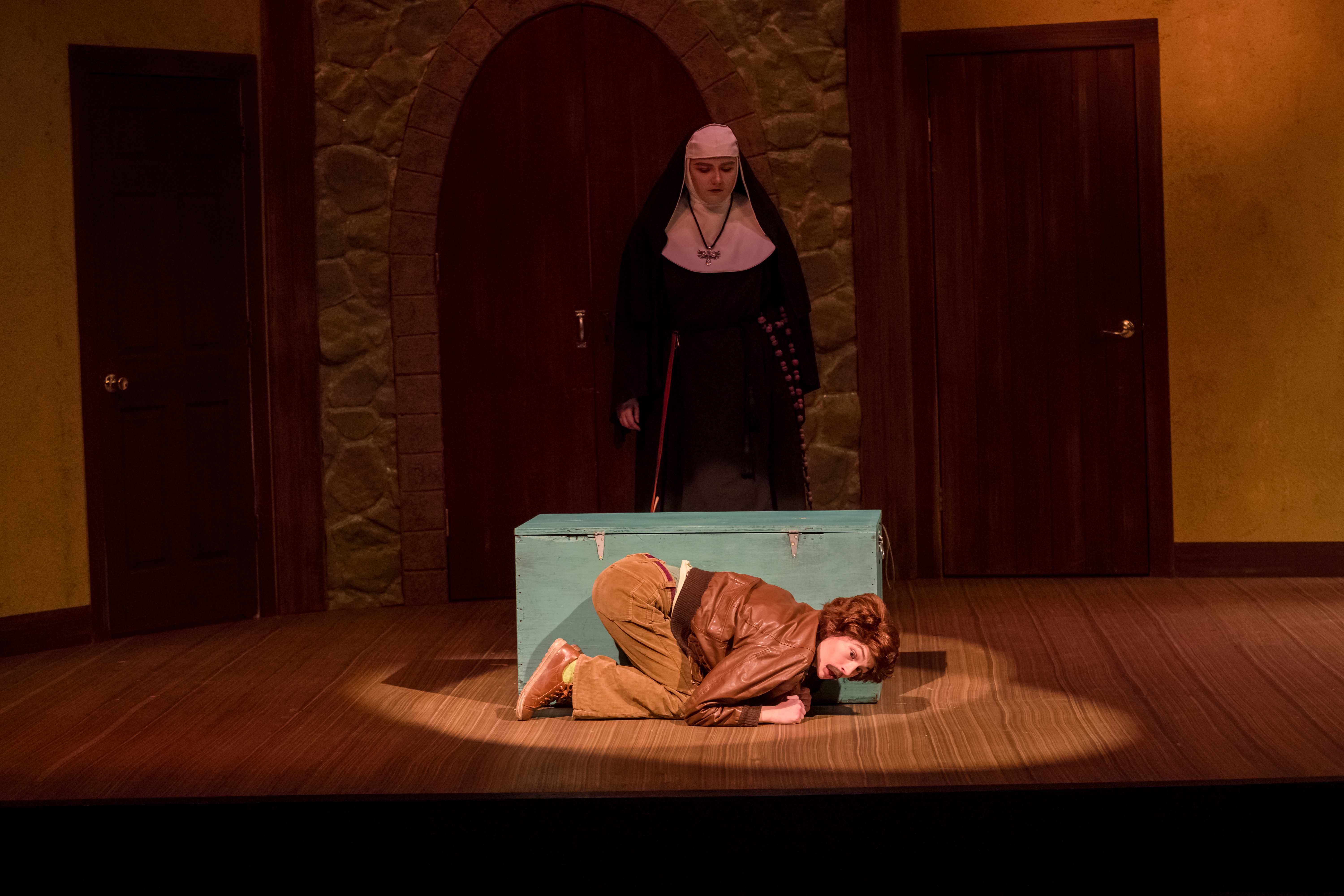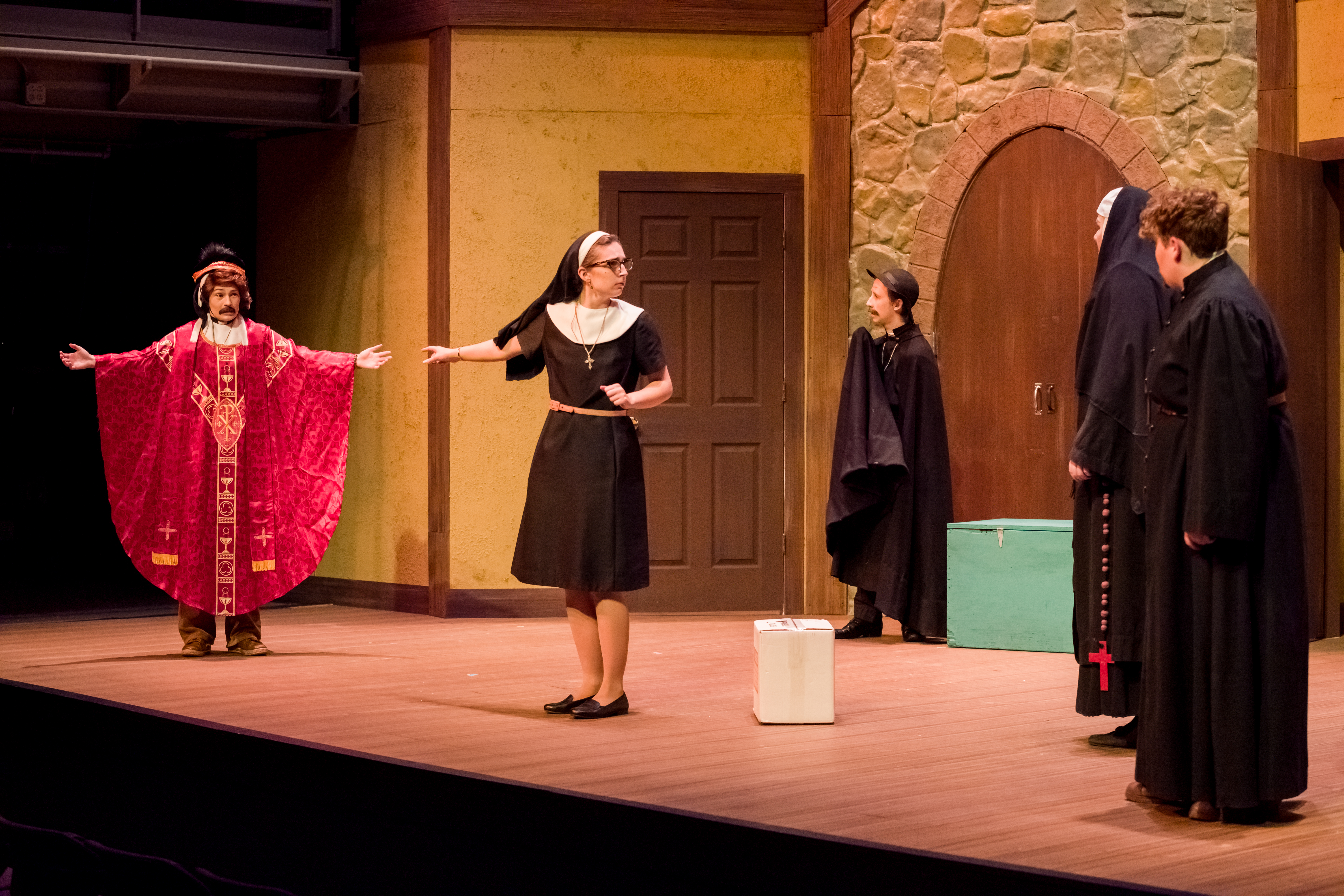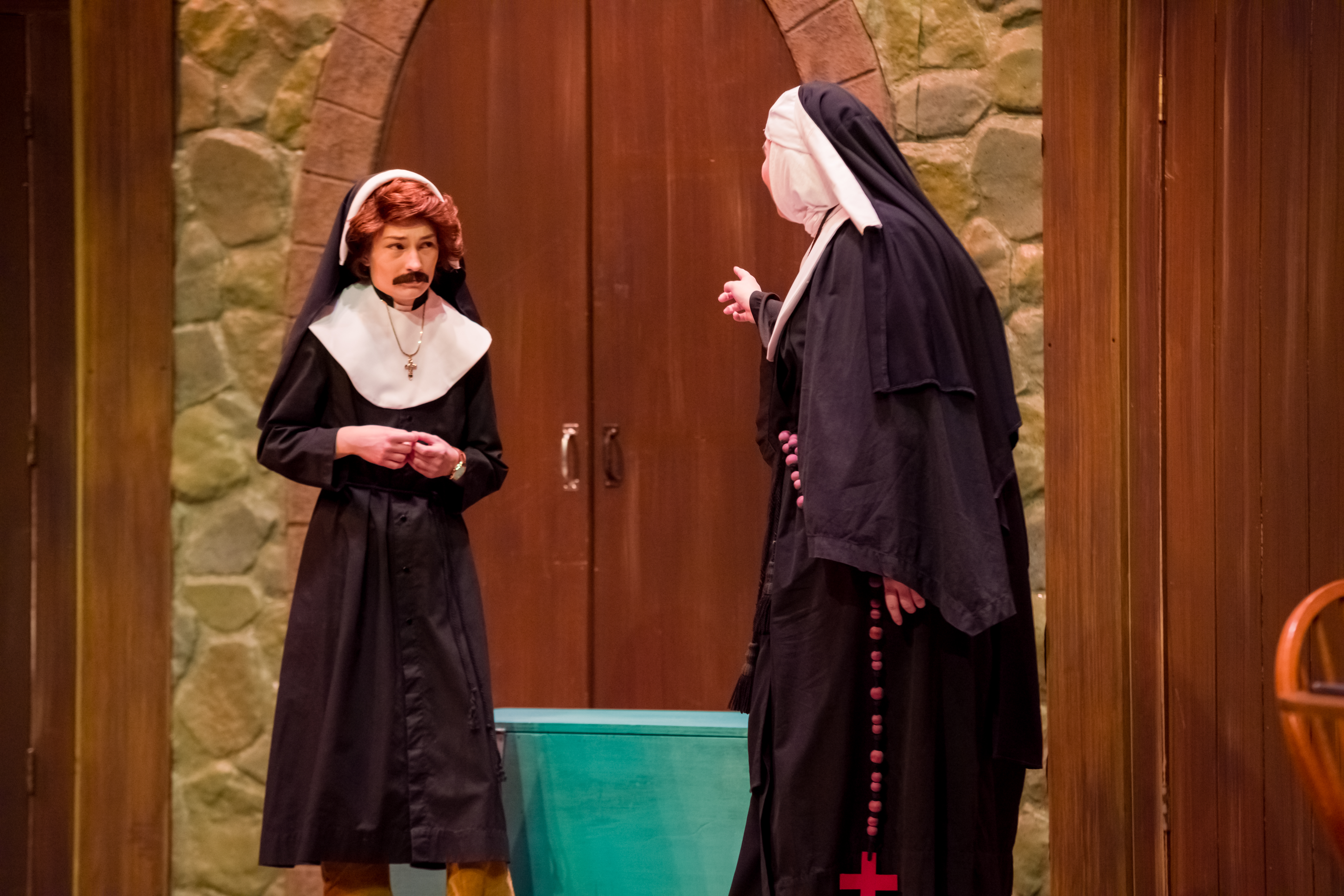 I had a lot of fun playing Paul in the farcical Drinking Habits. Paul was a skittish man who was sent with his ex to investigate a convent that was accused of making and distributing wine. While playing Paul, my biggest challenge was trying not to break character as I had to wear many layers of costumes on stage. Paul goes undercover as a priest, a nun, and a cardinal, and all of these disguises were stacked on top of one another. Paul was full of energy and was the butt of many jokes.